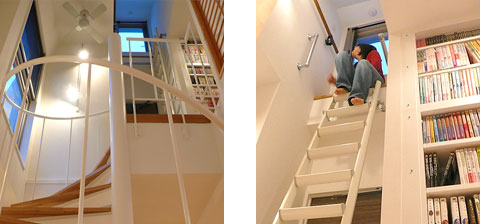 5・6Fのメゾネットタイプを選んだAさん。設計当初からフロアごとにパブリックとプライベートを分けて作りこもうと決めていました。 もともとお客が多かったので、5Fは一度に10人近くのお客を同時にもてなせるよう、そして料理を作りながらもパーティーの輪の中にいられるようキッチンをリビングインのL型フルオープンに。床は古木風のナラ無垢材で統一、そしてマットな白の塗り壁としました。「これまでに色々なテイストのインテリアを試してきたので、『器』としての部屋はごくシンプルに、白と天然木とステンレスだけで作ってもらいました」週末ごとに集まるお客さんは、それぞれソファで談笑したり、バルコニーのベンチで煙草を吸ったり、カウンターに座って料理の手元を見ながら飲んだりと、各自好きな場所でくつろいでいるそう。